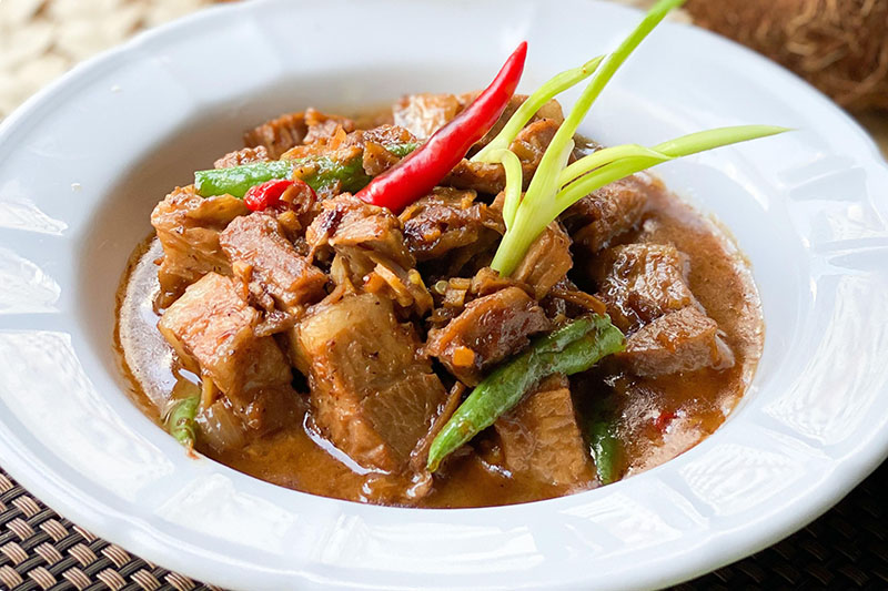 Bicol Express₱590 Tender pork belly simmered in coconut milk with ginger, chilis, and homemade shrimp paste Bicol Express quantity Add to cart Category: Main Courses Tag: pork Brand: Balesin Islander Related products Club burger ₱590 Add to cart Chicharon bulaklak ₱350 Add to cart Sinigang na baboy ₱720 Add to cart Full English ₱1,100 Add to cart
